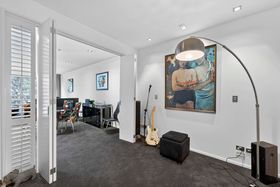 The master is positioned alongside the living area, opening directly onto a substantial deck which has been completely rebuilt. A walk-through wardrobe leads to a well-proportioned ensuite. The second bedroom, currently configured as an additional living or music room, offers flexibility and can easily accommodate a full bedroom setup if required. A dedicated office provides an ideal work-from-home solution. These spaces are complemented by a generous family bathroom with a spa bath and a separate powder room for guests.